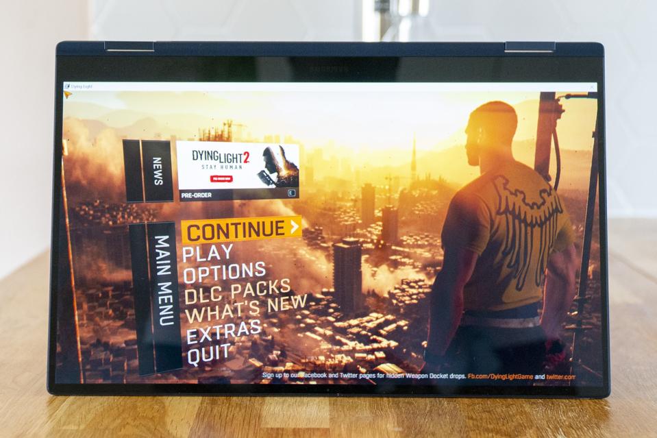 For gaming, the laptop can handle simple, casual games, but newer Triple-A titles won't run. There's no discrete graphics here. Instead the 360 Pro comes with Intel's (much improved) Iris Xe integrated graphics, so don’t expect to play Call of Duty or Aliens Fireteam Elite with much success. I tried what I thought would be a less trying game in The Ascent and I couldn’t get past lowering the graphics in the settings menu before it crashed. But it can handle older Triple-A titles like Dying Light in medium/low settings well enough.