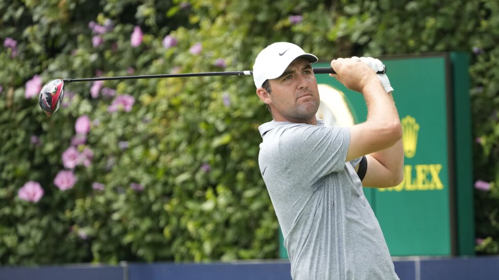 In wind that gusted through tree-lined Olympia Fields, Scheffler hit a driver off the fairway on the par-5 15th hole that traveled 299 yards — a lot of it on the ground — to just short of the green to set up his seventh and final birdie in a round of 6-under 64.