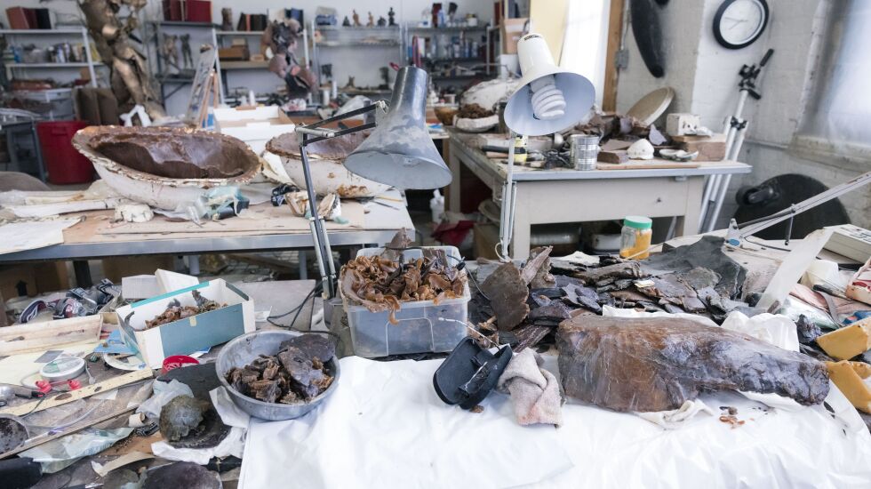 Migdal used to work in her studio every day, but is now there just twice a week. She’ll still spend four or five hours here, bent over a desk littered with scraps and slivers of wax. Other artists make bronze casts from the wax or cut, shape and weld the aluminum for the finished work.