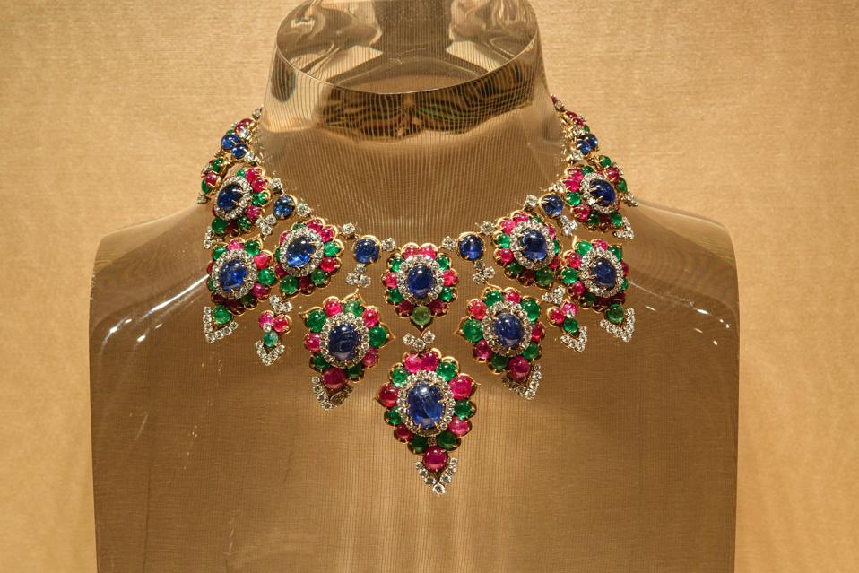 The real stars of Paparazzi are, not surprisingly, the Bulgari jewels that the celebrity names of the day collected and wore, seemingly everywhere—to parties, on set, to award ceremonies. There’s the knock-out 85-karat Colombian emerald necklace owned by Elizabeth Taylor, an engagement and wedding gift from Richard Burton, who famously remarked that his great love knew only one word in Italian, and that was “Bulgari.” Taylor wore the necklace when she received her Academy Award for “Who’s Afraid of Virginia Woolf?” Anita Ekberg’s sapphires and Anna Magnani’s diamonds are among the other major pieces to see.