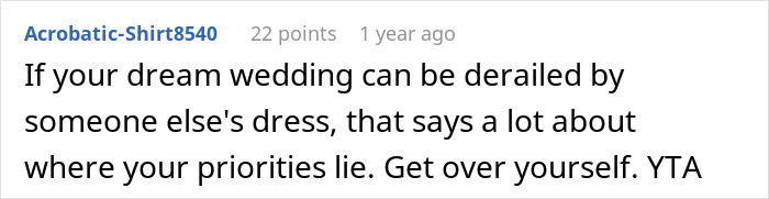 Hayes suggested the bride could have approached the situation differently by having a conversation with her niece about what happened. “She could sit down with her niece—and possibly the niece’s mother—and explain kindly, calmly, but clearly, why the choice of a white dress was upsetting,” she said.