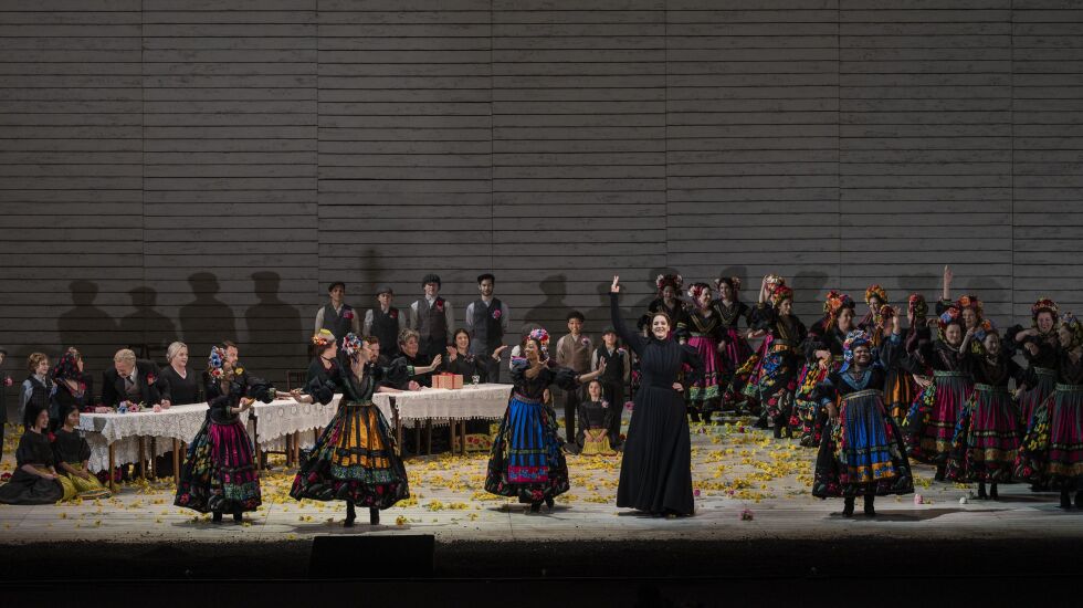 Thus, when the opera opens, the pregnant Jenůfa (soprano Lise Davidsen) is desperate for her baby’s father, Števa (tenor Richard Trey Smagur), to marry her. But because he spinelessly abandons her, offering money and nothing else, Jenůfa’s stepmother, who goes by her title, the Kostelnička or village sacristan (soprano Nina Stemme), takes the extreme measure of killing the baby shortly after its birth.