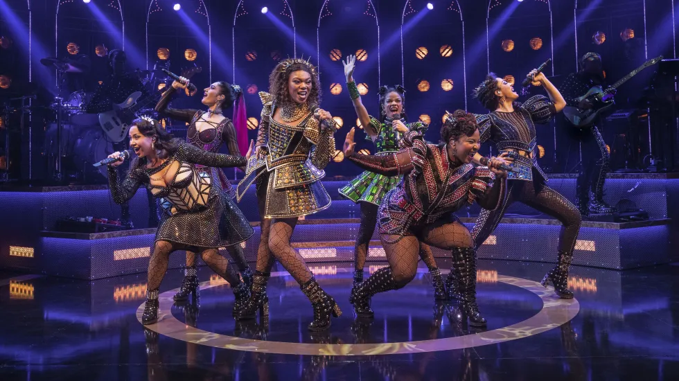From there, co-directors Moss and Jamie Armitage take the pop-rock score and the six-woman (plus a pile-driving live band of “Ladies in Waiting”) ensemble through an electrifying production that will make you want to get out of your seat and wave your cigarette lighter while roaring for an encore. (Don’t actually wave your lighter. Also, don’t leave before the post-curtain call mega-mix remix).