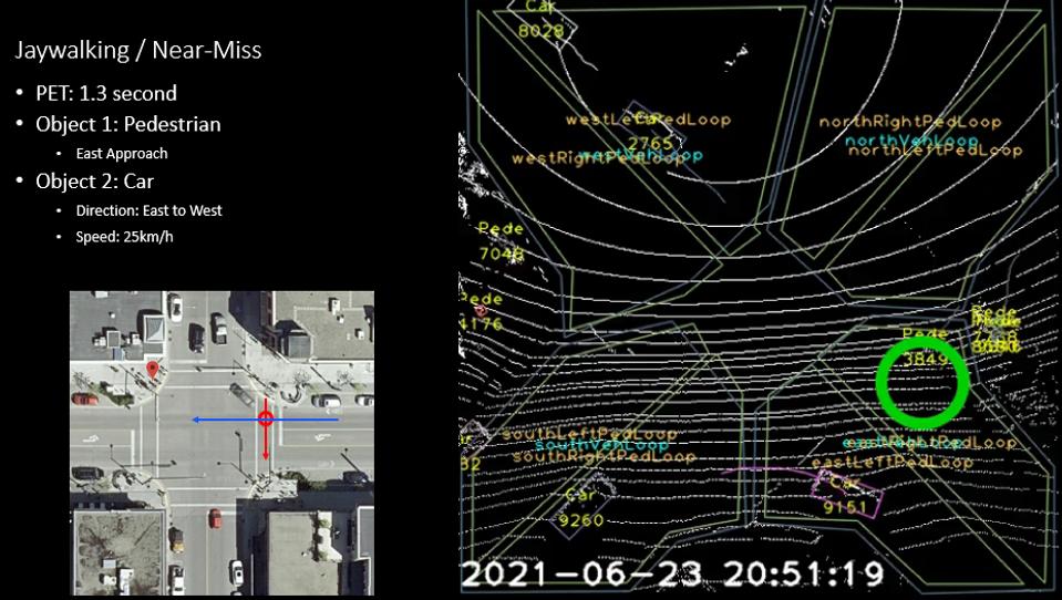 The Smart City initiative started in Canada about 4 years ago, with the federal government encouraging local groups to respond to a “challenge competition” in which quality of life improvements could be leveraged through judicious use of technology. Kelowna participated in this challenge in 2017/2018 along with over 200 other communities across Canada. From this experience it created an Intelligent Cities program in concert with Rogers (the predominant cellular/cable provider in Canada) and Blue City on a transportation focused use case. Resident workshops were conducted in 2018 to identify customer needs (residents), and provided city officials a roadmap/vision for future development, with traffic infrastructure and public transit as a priority. This helped frame the initiative with Rogers and Blue City. Andreas Boehm is the Manager, Intelligent City at Kelowna: “This initiative is not about leveraging technology for technologies’ sake. It is not a top down deployment by large tech companies without considering the concerns of the community. In addressing their concerns, we find that LiDAR has provided us with consistent data that we previously did not have - especially in low light and bad weather conditions. This is proving to be a great tool as we proceed forward.” Figure 3 shows an example of traffic conflict data that the city was able to obtain through the pilot initiative, relating to pedestrian jaywalking and near misses with speeding traffic.