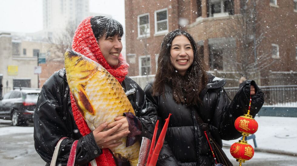 Under a steady stream of snow flurries, hundreds of revelers gathered Saturday afternoon to ring in the Year of the Rabbit at the annual Lunar New Year Parade in the Uptown neighborhood.