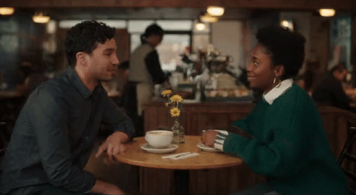 The challenge: Two people conversing, barista working, door opening mid-scene with siren Doppler. No background music.