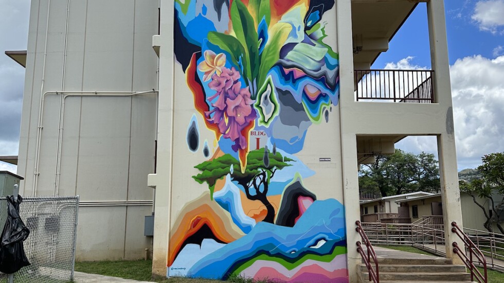 Meantime, Sansing also hit Hawaii earlier this year to do a mural there. Done on the side of a school, it’s shown below.