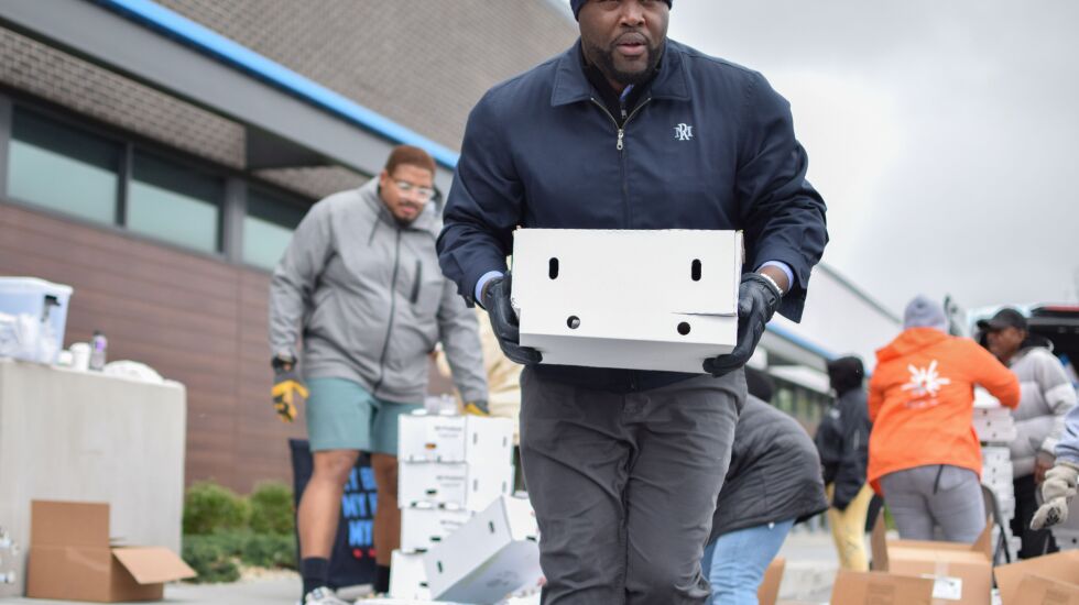 That’s where the community group My Block My Hood My City was distributing $33,000 worth of food and meals — enough for about 4,000 people — according to the group’s founder, Jahmal Cole.