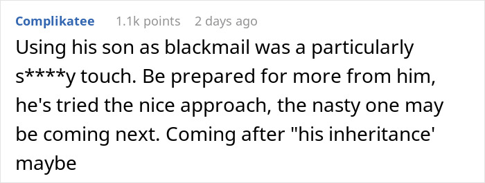 People there were no less infuriated than him. They were appalled that this dude so badly mistreated his grieving stepfather and was entitled enough to ask for any favor. Basically, folks urged the OP not to give in and not to buy the house. The man, who back in the day didn’t even give him 2 weeks to grieve, doesn’t deserve any help now.