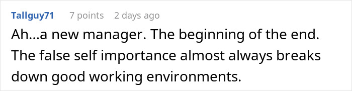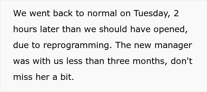 She further tells us that the new manager was strangely passionate about introducing changes. “That was the only change that impacted our day-to-day work so greatly, but she did try to intervene in other areas. Such as scheduling (she wanted to change the way we prioritize requests for off days), changes to our lunch breaks, how to call in sick, etc., but those were mainly shot down (politely) by other managers in the discussion,” Sonja said.