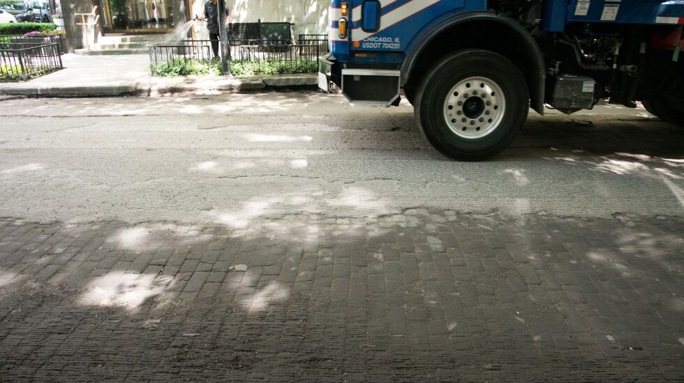 It wasn’t a random daydream. He was staring at the wood paver blocks unearthed as city work crews tore up the surface of Banks Street just west of DuSable Lake Shore Drive to repave the road.