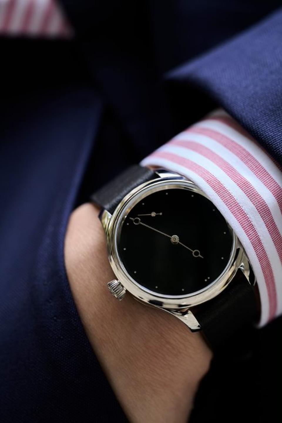 According to Mark Cho, co-founder of The Armoury, “When Edouard and I first started talking about the idea of making a watch together, my main requirement was that it was [to be] small. I like watches that are discreet but reveal a deeper complexity if you pay them some attention. To me, H. Moser & Cie.'s fumé dial and Vantablack® dial are iconic and I wanted to work with one of them as a starting point for the design. Quickly, I started to favor the Vantablack® and I had the idea to add markings to the dial somehow. My design partner: Elliot Hammer, suggested that we imagine the design with the theme of a total solar eclipse. Thus, the Endeavour Small Seconds Total Eclipse was born.’’