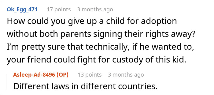 However, that doesn’t really apply to this story, as u/Asleep-Ad-8496 chose adoption. Her son grew up with friends of her parents as his mom and dad, a couple who, at the time of his birth, couldn’t conceive themselves.