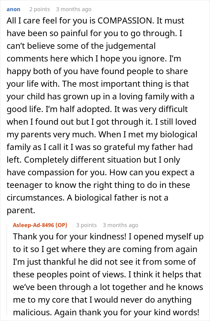 The user u/Asleep-Ad-8496 detailed a very personal but ultimately wholesome story. We don’t often see stories of teen pregnancy and adoption where there’s very little drama and all the characters get along in the end. But that’s what happened in this case.