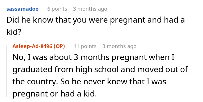 “He would have dropped out of high school to have this baby with me,” the Redditor wrote. “But that’s not the life I wanted for him and it’s not the life I wanted for our son.” In other comments, she added: “The resentment, the not being able to finish high school, the not being able to make a life for himself would have been too much.”