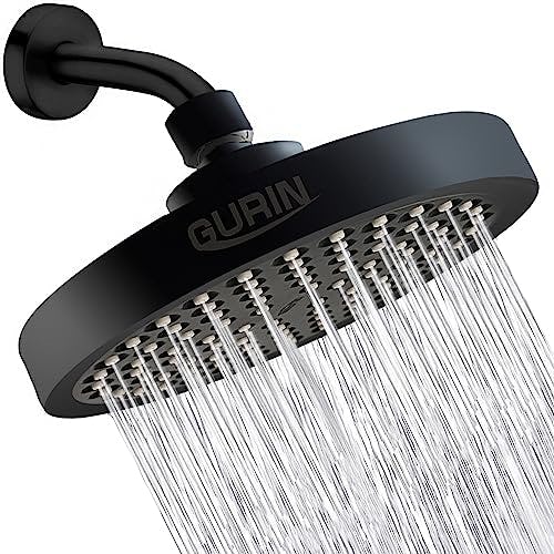 GURIN Shower Head High Pressure Rain, Luxury Bathroom Showerhead with Adjustable Angles, Anti-Clogging Silicone Nozzles - Matte Black, 6 Inch Round