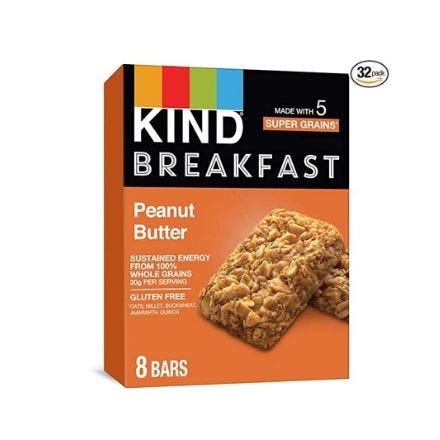 You can really taste the goodness in the KIND Peanut Butter Breakfast Bars. Each one has 230 calories, and one full serving of grains, for slow-release energy. They’re chewy, satisfying, and gluten-free to boot. I’m happy with anything with peanut butter, and these are very nutty.