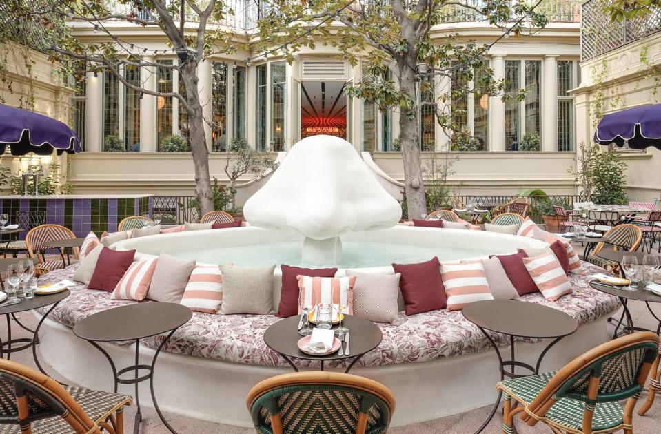 Since opening in late 2021, Gala has become the place to see and be seen in Barcelona. With a delightfully extravagant design by Quintana Partners, the Alice-in-Wonderland-meets-psychedelic amusement park ambiance is only topped by the killer cocktails and a menu that features everything from seasonal tapas to a mouthwatering selection of raw fish. On sunny days and balmy nights, the interior patio is the place to be—at least until the action moves downstairs to the sultry basement nightclub.