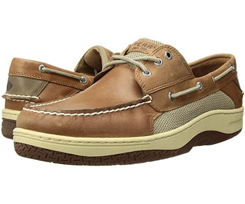 Water-resistant 100% leather combines with a slip-resistant rubber sole in this classic summer slip-on shoe that only gets better with age. A boat shoe's timeless, versatile style upgrades even the humble jorts and is nice enough for a pair of khakis and a sport coat. Once they're broken in, they mold to your foot like you've had them forever — and the side air mesh panels mean breathable wear day in and day out.