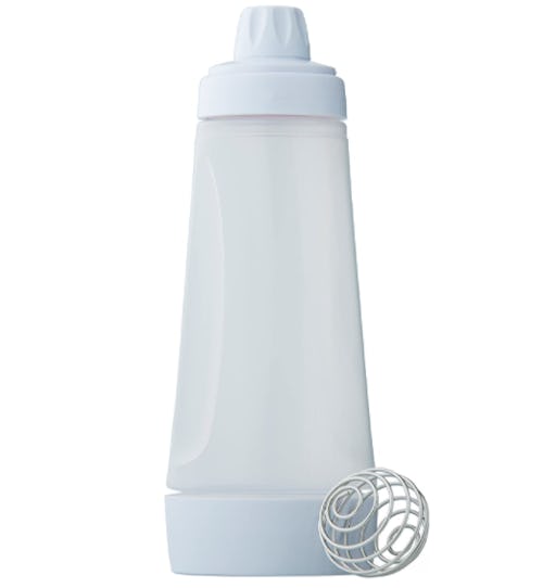 Make the perfect Saturday morning breakfast or brunch with the help of this pancake batter mixer. The mixer has a wired "Blender Ball" whisk inside to thoroughly mix the ingredients as you shake the bottom — easily making smooth and bubble-free hot cakes. The container itself also has a wide mouth, so filling it with ingredients is simple and less messy. Plus, the easy-pour spout makes round pancakes with a simple squeeze.