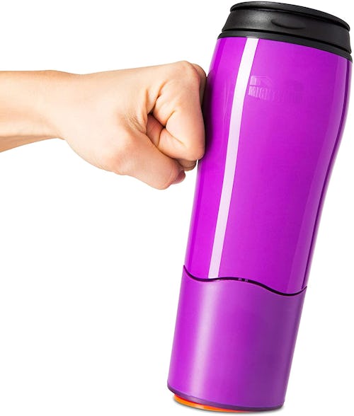 It is impossible to knock over your coffee with this no-spill travel mug. It is made using innovative Smartgrip technology which secures the mug to any flat surface without using magnets or suction cups. The BPA-free travel mug holds 11 ounces of your favorite beverage and fits easily in any cup holder. The lid is dishwasher safe, but be sure to hand wash the cup itself. One reviewer noted, "Bought this for my accident prone co-worker. It has already saved us from cleaning up a mess when her purse slid off the desk while looped around this coffee mug...Very impressed and totally worth the money!"