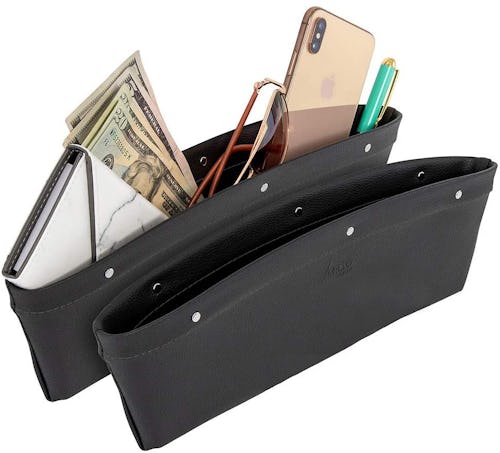 These car seat gap organizers solve two of life's annoying problems for just $17. The pack of two adds storage to your car, right where you need it — within the driver's reach, plus it blocks the gaps between car seats to catch coins, keys, phones, or anything you might accidentally drop down there. They're made of leather so they're stylish and long-lasting. They comfortably fit in a seat gap between 0.5-inch and 2-inches wide and even come with dividers so you can create your own compartments to stay organized. Keep your eyes on the road and stop worrying about losing your phone between the seats with this affordable and useful solution.