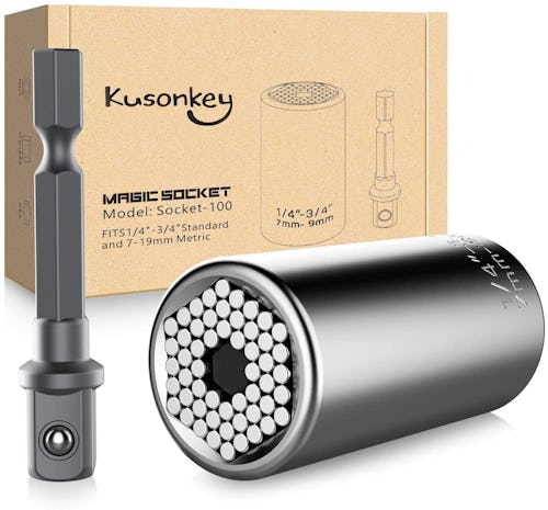 Turn your drill into a socket driver with this universal socket that costs less than $10. The stainless steel attachment has 54 individual spring pins that retracts to make room for hex, cap, square, nut, eye, or hook sockets. Whether you’re just making a few simple fixes around the house or are knee-deep in your latest DIY project, this cheap gadget will save you time and money and the headache of having to find just the right tool. The included power drill adapter makes it easy to add this universal socket to any ratchet or electric drill you have at home.
