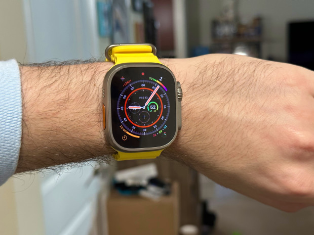 Unlike any other Apple Watch, the Ultra comes in one size—49-millimeters—and it's a flat-top finish, in which the display doesn't slope down the edges like on previous models. The 49-millimeter screen is Always-On, meaning you can glance down and see your watch face and widgets without tapping the display or raising your wrist.