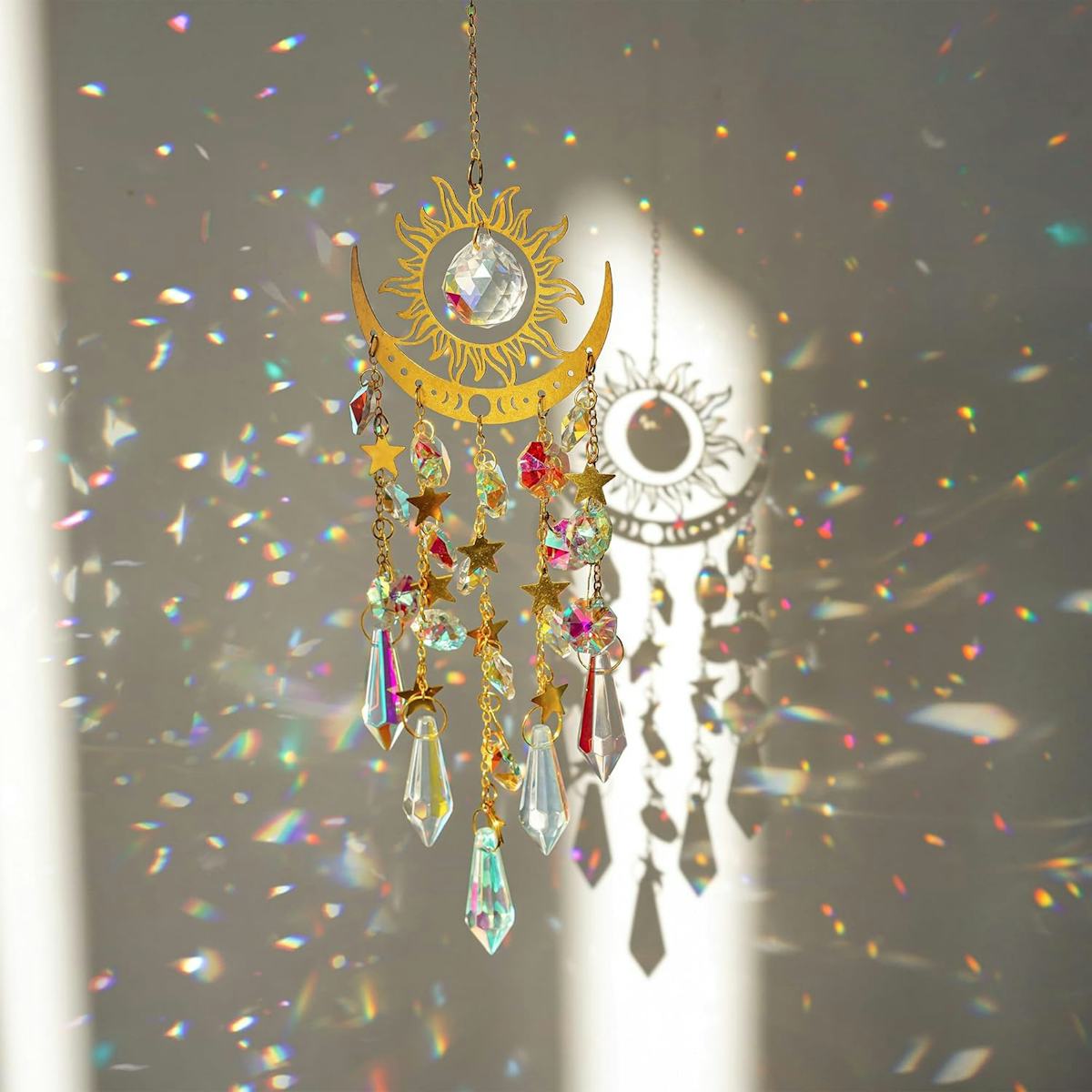 A crystal suncatcher with an enchanting celestial motif