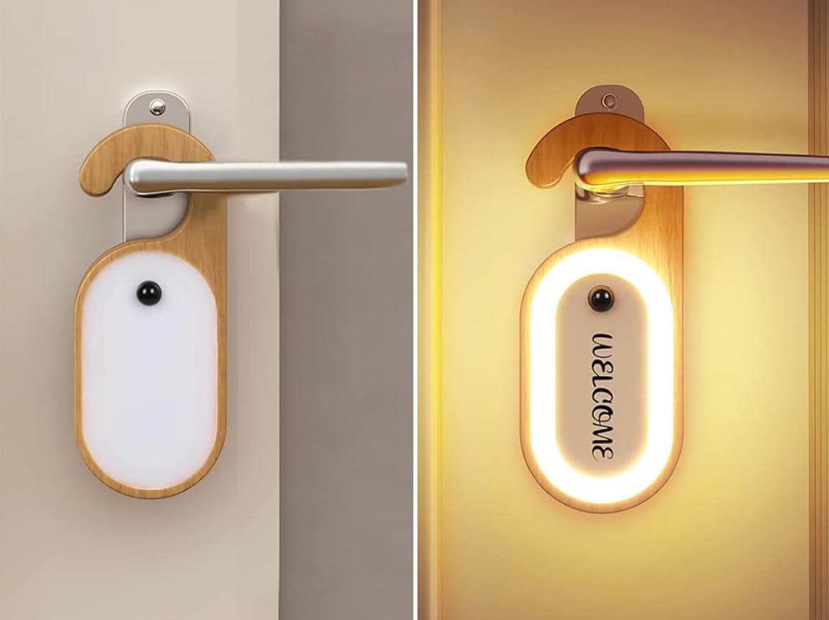 Part night-light, part message board, full design statement — this rechargeable wooden light is as clever as it is beautiful. Crafted from smooth beech wood with a warm-white LED glow, the light automatically turns on when it detects motion in the dark, illuminating any handwritten note or doodle on its erasable acrylic board. And it’s super easy to hang on a doorknob.