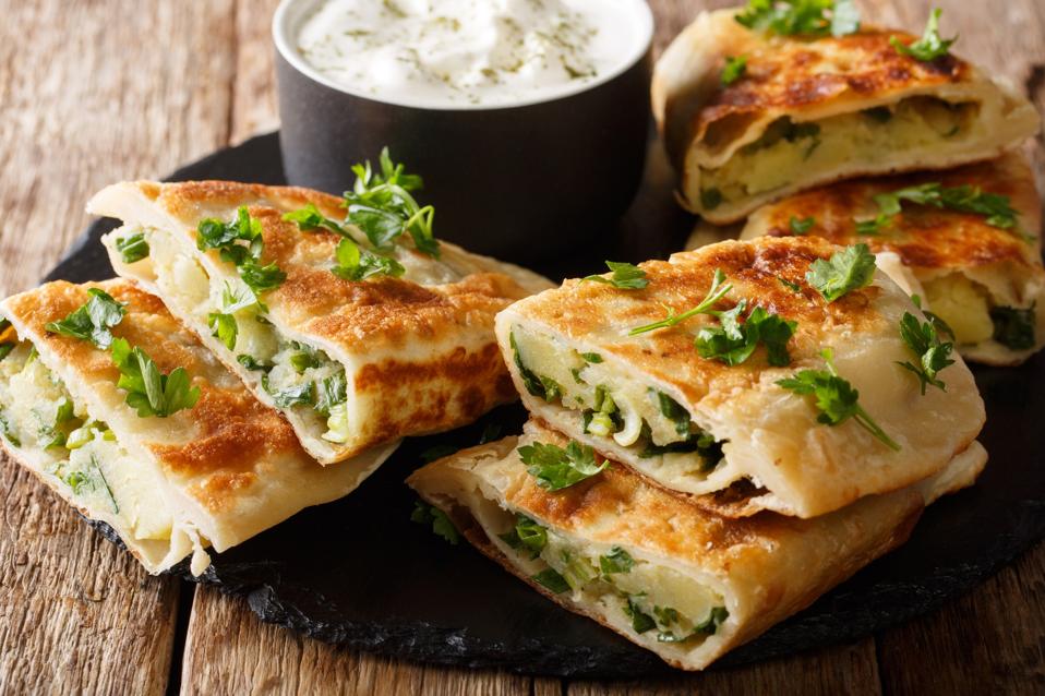 Bolani is one of the holiday mainstays of Afghanistani cuisine. The pan-fried pastry pockets are typically filled with a mixture of vegetables like leeks, potatoes, spring onions and pumpkin or minced meat. Some varieties also use red or green lentils as filling. The half-moon-shaped finger food is unique to Afghanistan and is traditionally served with carrot jam, green chutney or a yogurt dip.