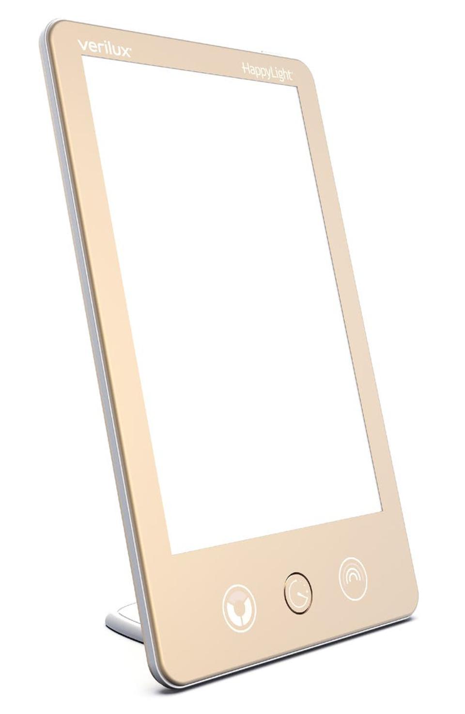 This sleek iPad look-alike portable light fixture from Verilux stands on its own and allows you to choose from four brightness settings and three HappyHue color temperature options. A convenient built-in countdown timer provides up to one hour of light in 10-minute increments. Choose from a stark white or champagne gold option.