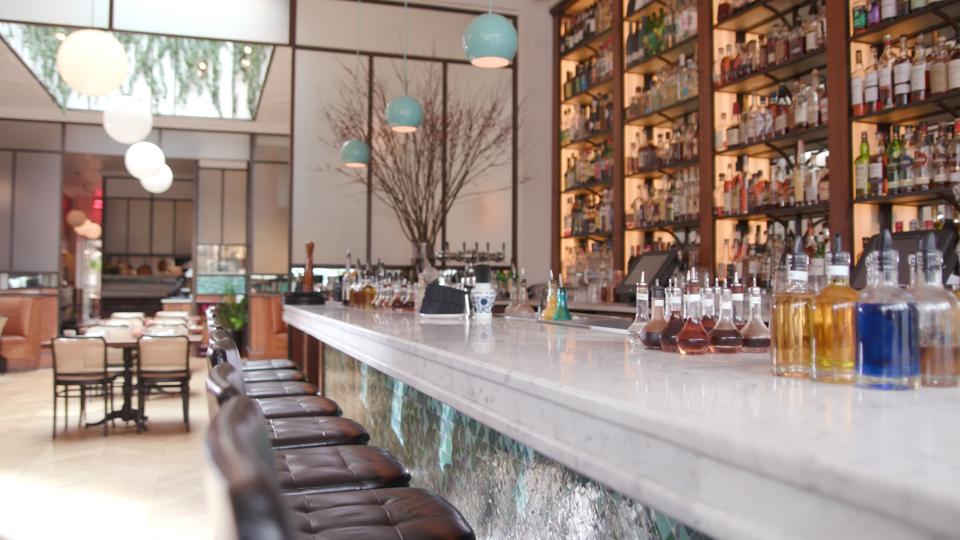 Let’s start with the setting: Sofia is chic to say the least and has several spaces for you to enjoy your time. They’re each unique but all appealing. The main dining area features airy ceilings, mirrored walls, and handsome flooring. And I can’t forget the impressive-looking bar (more on that later) stocked with so many spirits that it reaches all the way to ceiling. In the back, a garden room has a retractable roof, hanging plants, and a black and white patterned floor— it’s the epitome of indoor/outdoor dining.