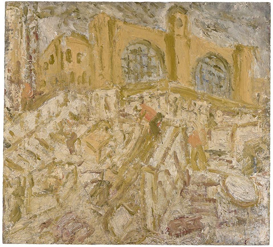 Kossoff’s 1971 painting, Demolition of YMCA Building No. 2, could have been a dour account of destruction. Instead, the energy and vigor of the brushstrokes, and his strategic use of reds and blues make for a celebration of creation, of rebuilding, of the transformation of London itself.