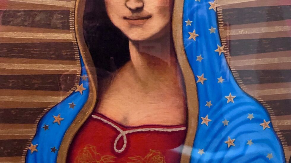 That said, my favorite piece is still Cesar Augusto Martinez’s gentle “Mona Lupe,” a delightful commingling of Our Lady of Guadalupe and the Mona Lisa — better than the original, in my mind, because, unlike at the Louvre, you don’t have to claw your way around 200 tourists in a room that smells like a high school gym locker room to get a glimpse.