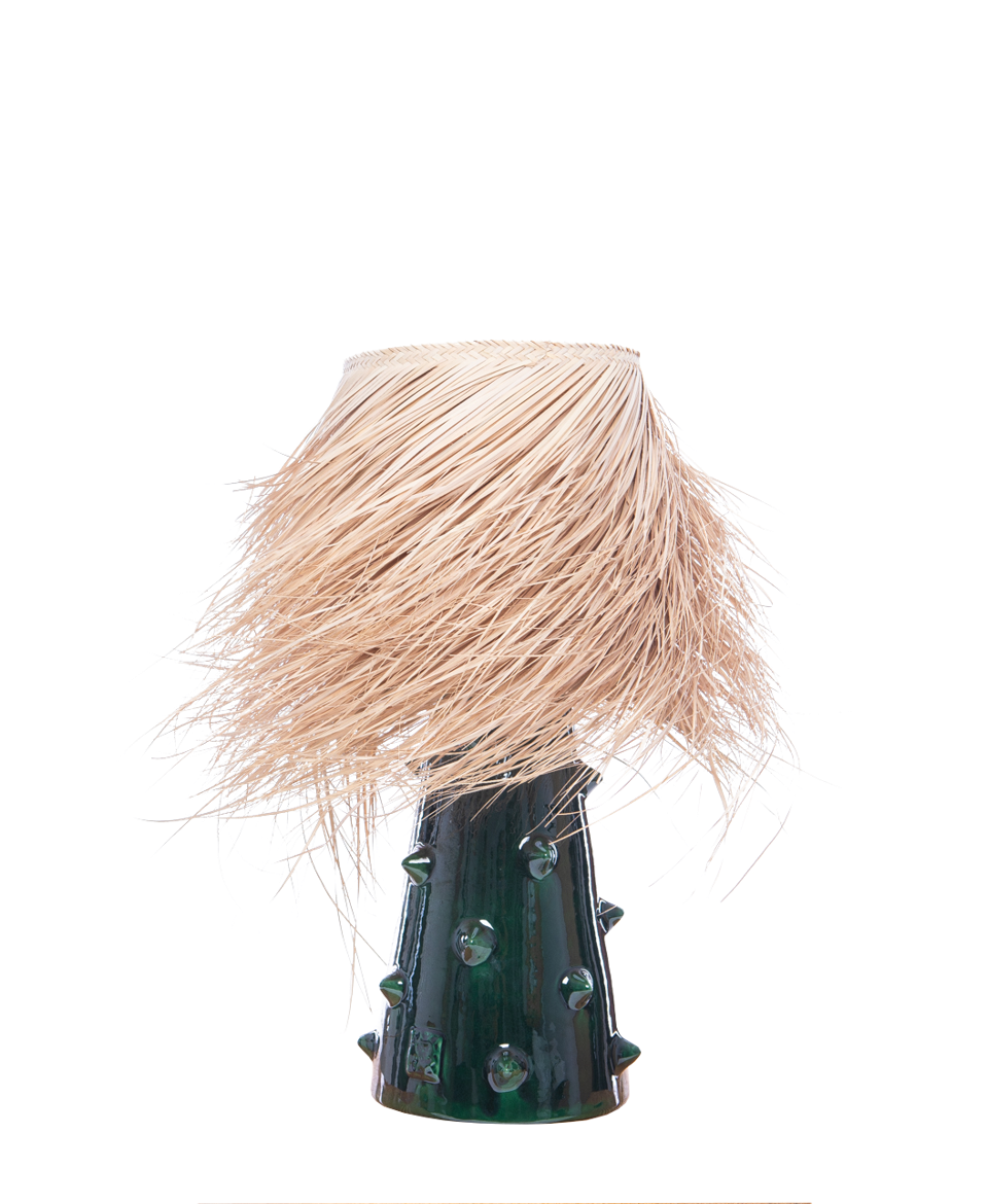 Celebrating 10 years of Tunisian craftsmanship, Rock the Kasbah’s Mediterranean-inspired Lamp No. 2 featuring a palm fiber shade and green enamel ceramic base offers a carefree, rustic look perfect for beachfront living, while the cage-like Magali pendant in rattan by Lucide fits seamlessly in a country home.