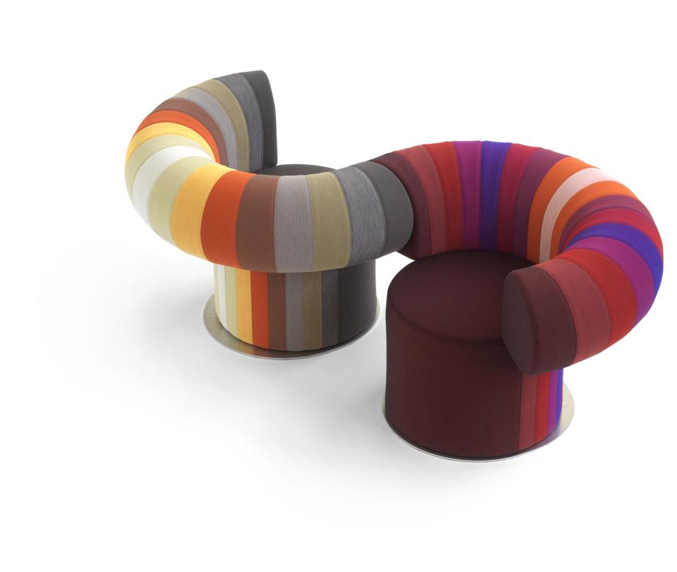 Join two geometric Big Talk lounge chairs by Blå Station for a snakelike creation akin to a Victorian-era love seat.