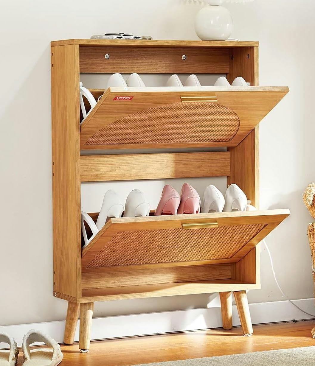 “For those smaller bathrooms with very little hidden storage, repurpose a narrow shoe cabinet meant for a hallway,” says Robin DeCapua, design expert and owner of Mad Mod Home. This shoe cabinet has a slim profile that'll take up minimal space when pushed up against your bathroom wall. Open up the cabinet doors to store small items like hair tools, spare washcloths, nail polish, and backup toiletries.