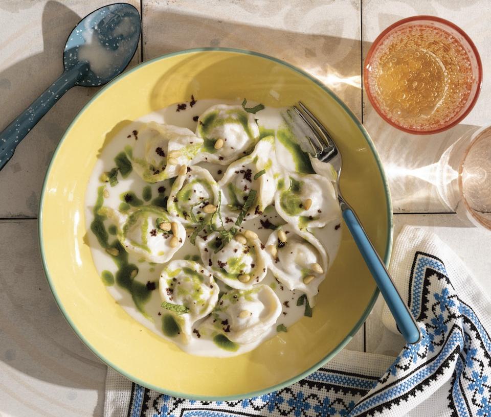 To give a taste of what you can expect to find in Arabiyya, Assil has graciously shared her recipe for Shish Barak, Lamb Dumplings in Yogurt Sauce with Mint Oil. It’s a recipe that requires a lot of time and love; a relaxing activity for a day off. “While my mother favored expedience in the kitchen, there was one notable exception: when she was in an especially good mood or just wanted to spoil us, she’d set aside the demands of her job and spend an afternoon contentedly rolling out pasta for shish barak, tortellini-shaped meat-filled dumplings,” Assil wrote. “Bathed in a garlic-yogurt sauce, these dumplings deliver a burst of juicy spiced lamb, enrobed in fresh pasta, and brightened with a drizzle of minty oil.” If you’re going to take the time to make dough and shape dumplings, I’d definitely make enough to freeze so that you can enjoy the fruits of your labor for even more meals. Assil added that any or even all of the elements of this dish can be made up to several days ahead, then cooked and assembled just before serving.