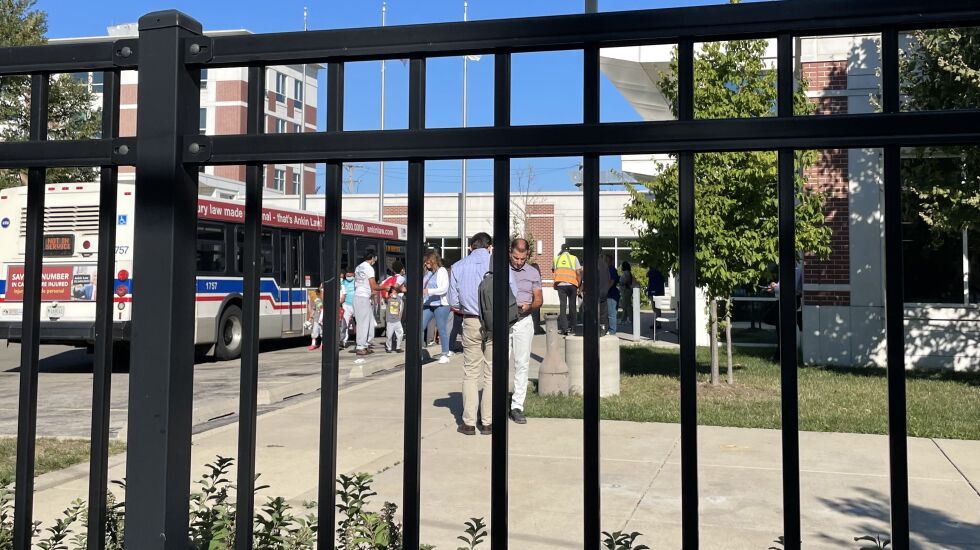 A woman carrying a toddler, and a boy holding the hand of a smaller boy, were among a group who arrived Wednesday at a Humboldt Park shelter that is serving as a refuge for immigrants being sent to Chicago from the Texas border.