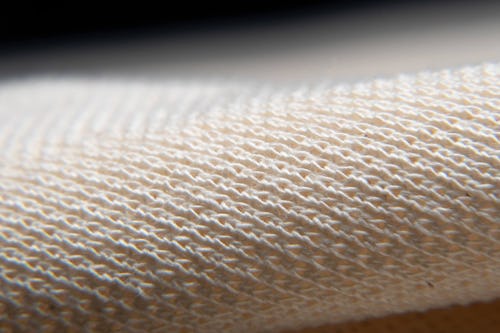 The shape or structure of a yarn gives it its properties. Silk is shiny because of its triangular cross-sections. Wool’s warmth comes from its microscopic scales. Under a microscope, a polyester thread looks like a fiber-optic cable — every filament bonded to itself in a neat geometry that gives the material its useful properties: strength, durability, abrasion resistance, and moisture control.