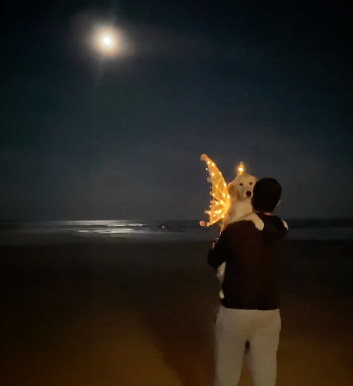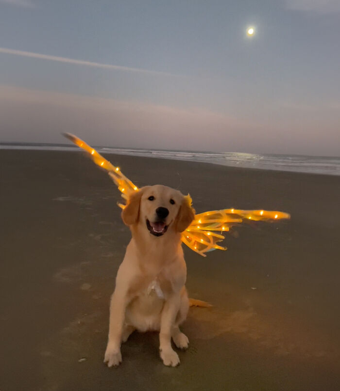 Those who do believe in magic will always find it, and these adorable fashionista golden doggos are the perfect example. When I see them happily fluttering along the beach with their shiny fairy wings, there’s nothing but Erin Hanson’s quote in my mind: