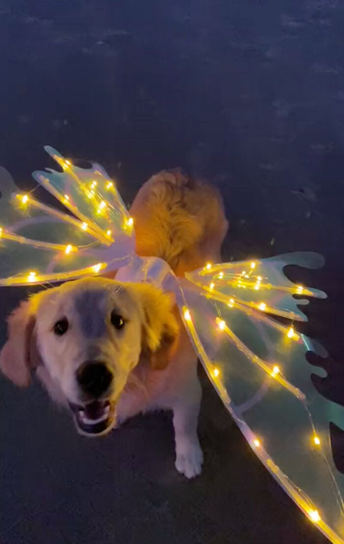 TikTok users can’t get enough of this sweet golden retriever who has all of the great features of an ordinary retriever, of course, but she has something extra – fairy wings.