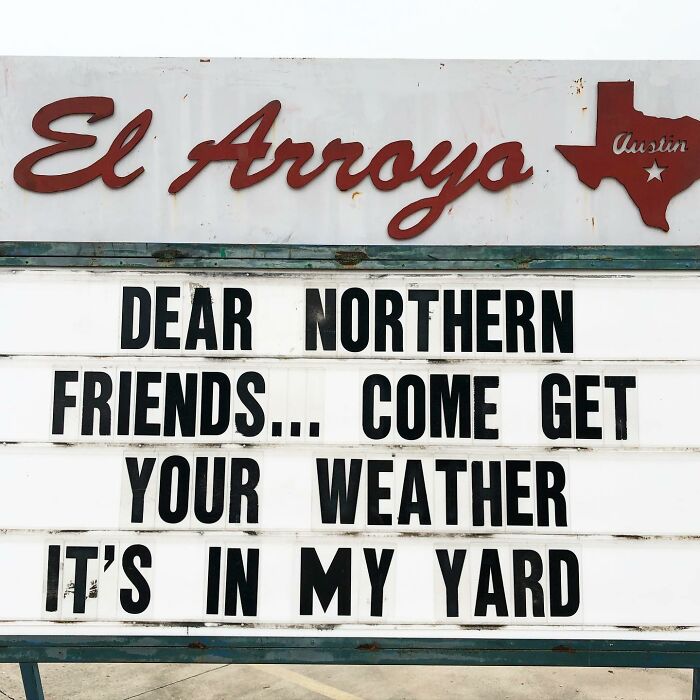 The El Arroyo restaurant is based in Austin, Texas, and has been serving up comedy alongside mouth-watering Tex-Mex dishes since 1975. Remember to upvote your favorite pics as you scroll down. And go ahead and read Bored Panda’s interview with British comedy writer and author Ariane Sherine who told us about the pros of having a limited space or time frame to work with, like when putting together a witty one-liner on a marquee sign.
