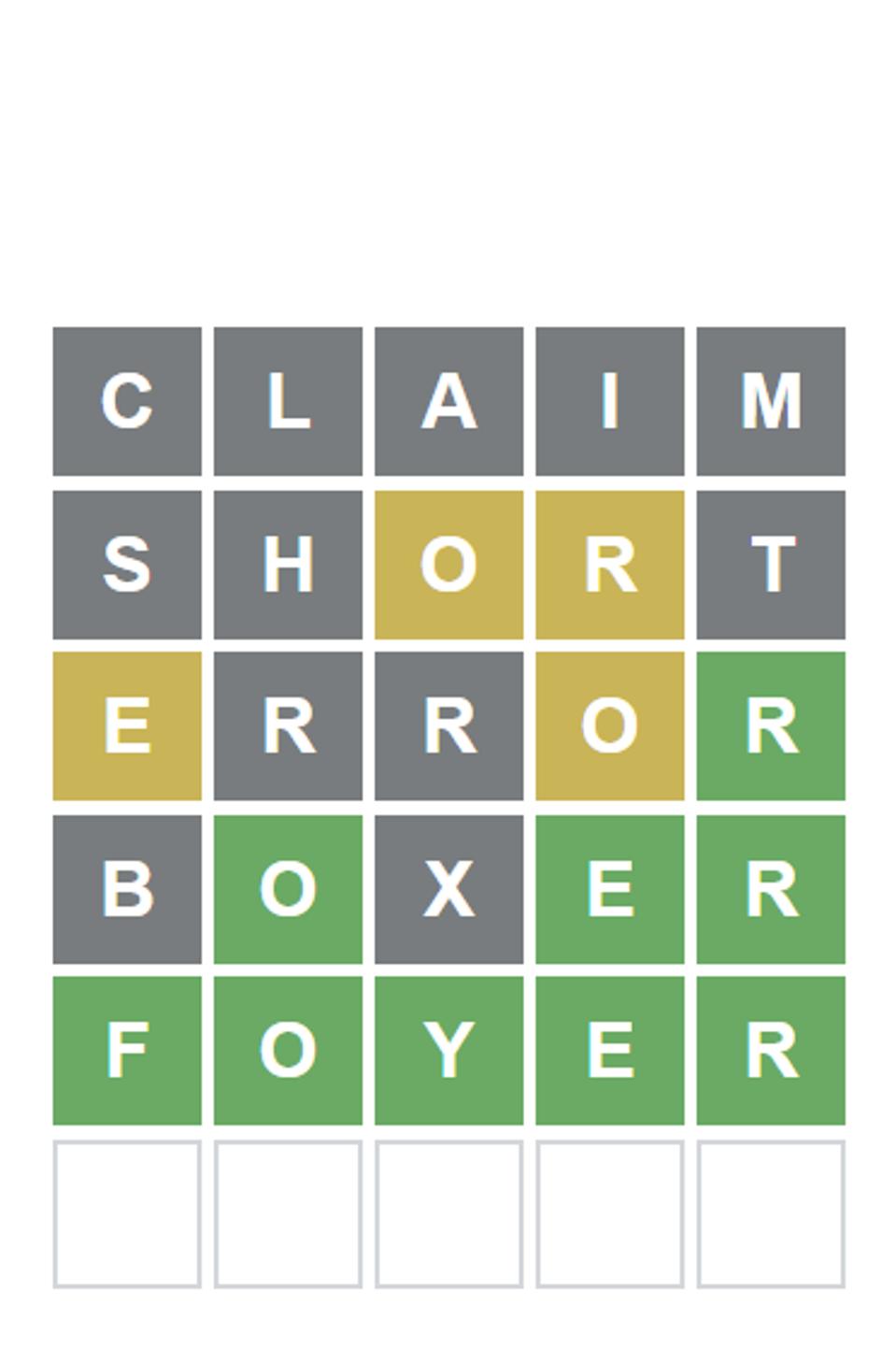 Short was much better, and Wordle Bot agreed. “Great choice,” WB informed me. “SHORT would’ve been one of my top picks. You’ve narrowed it down to 27 possible solutions.”