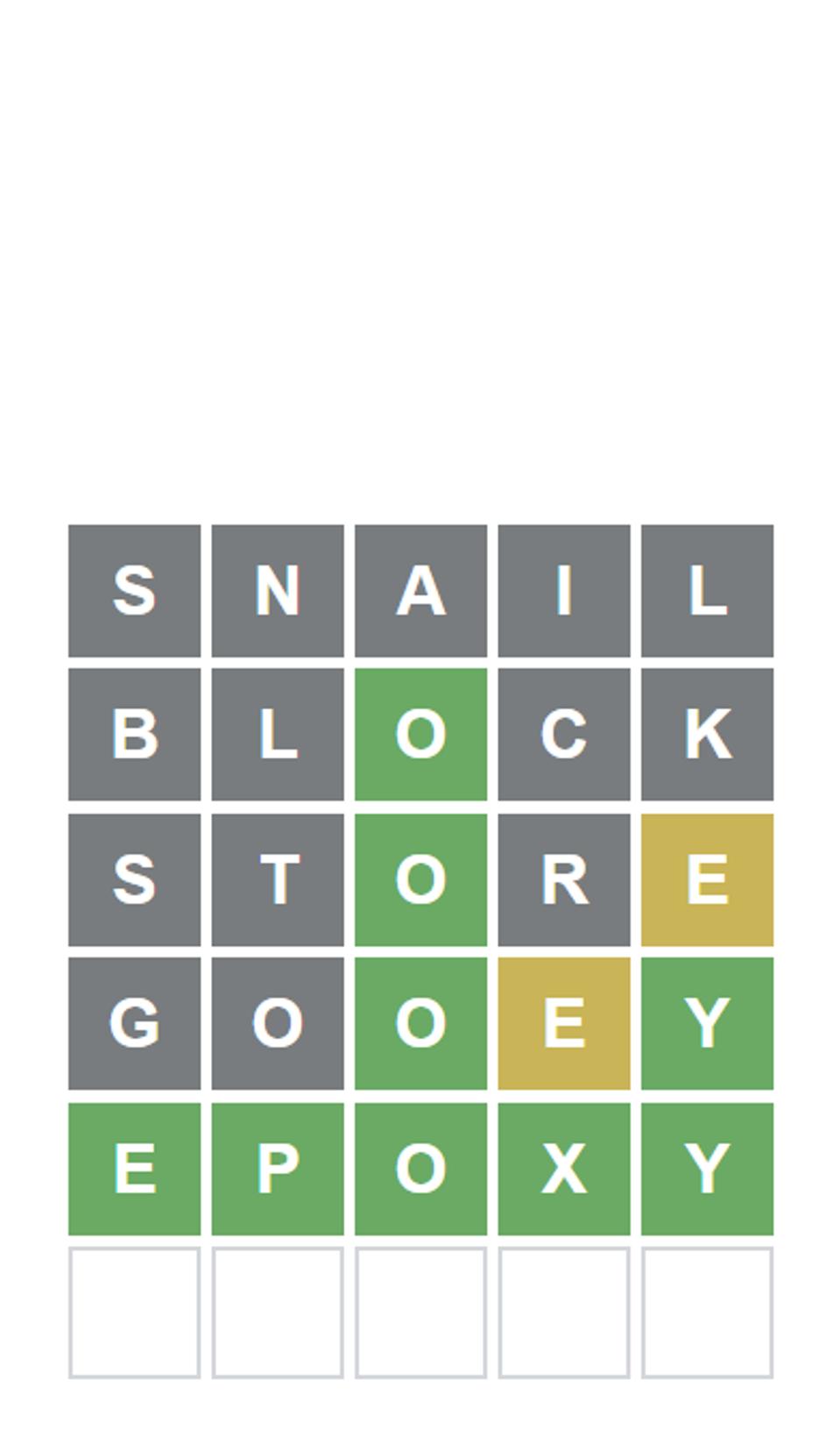 - BLOCK wasn’t much better but at least it gave me the ‘O’ in green. STORE gave me the ‘E’ in yellow but left me totally uncertain of where to go next.