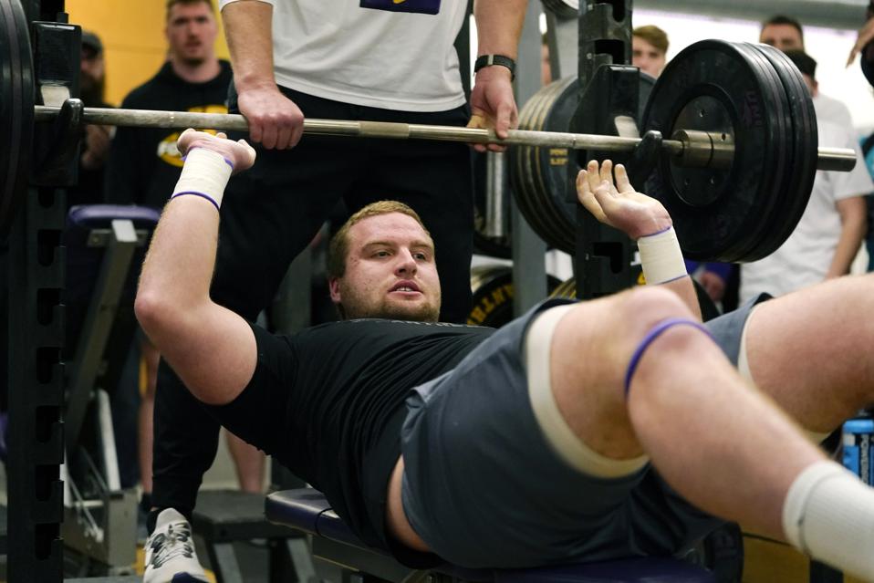 Overlooked, rail-thin high school player who had just two Division 1 offers coming out of Newman Catholic High School in Mason City, Iowa. The 6-foot-7 Penning was just 250 pounds when he arrived at Northern Iowa — and he left 80 pounds heavier.