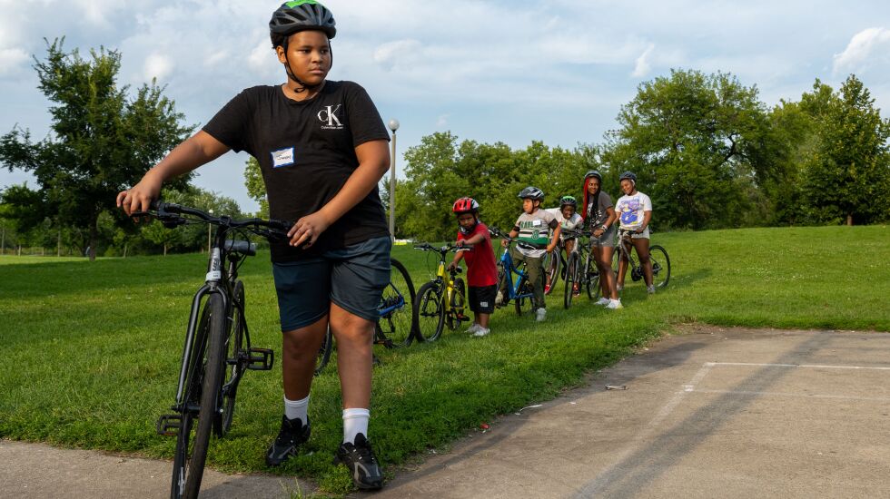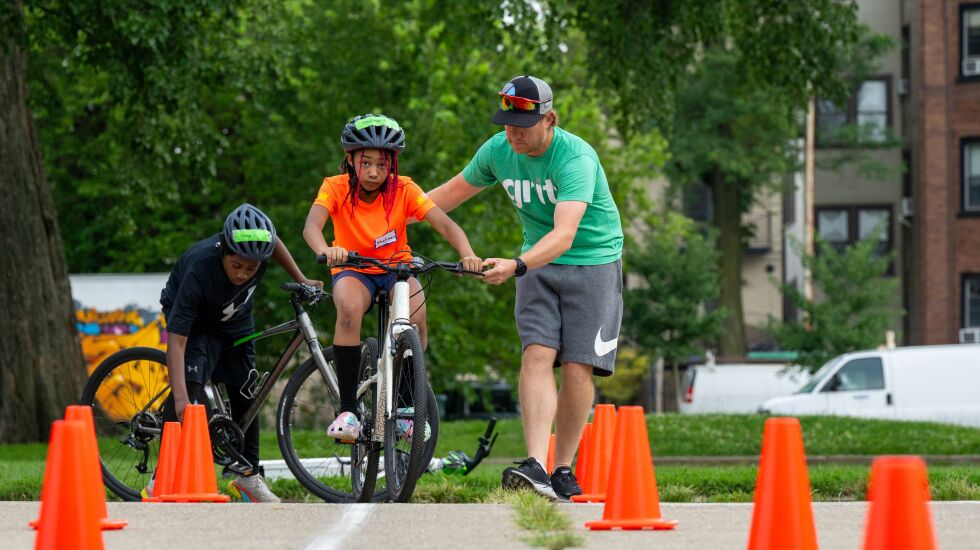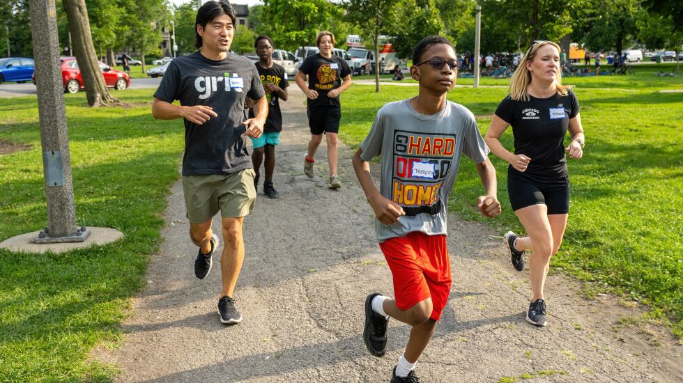 Trevion was one of 25 kids at Humboldt Park on a recent Tuesday training to race in the annual Life Time Kids Triathlon on Saturday. The free program comes from Breakthrough Urban Ministries, an East Garfield Park community organization, and Live Grit Soars, a West Side nonprofit that teaches the sport of triathlon to young people.