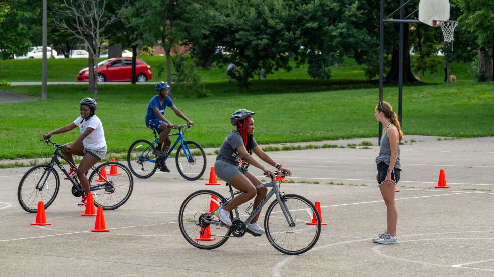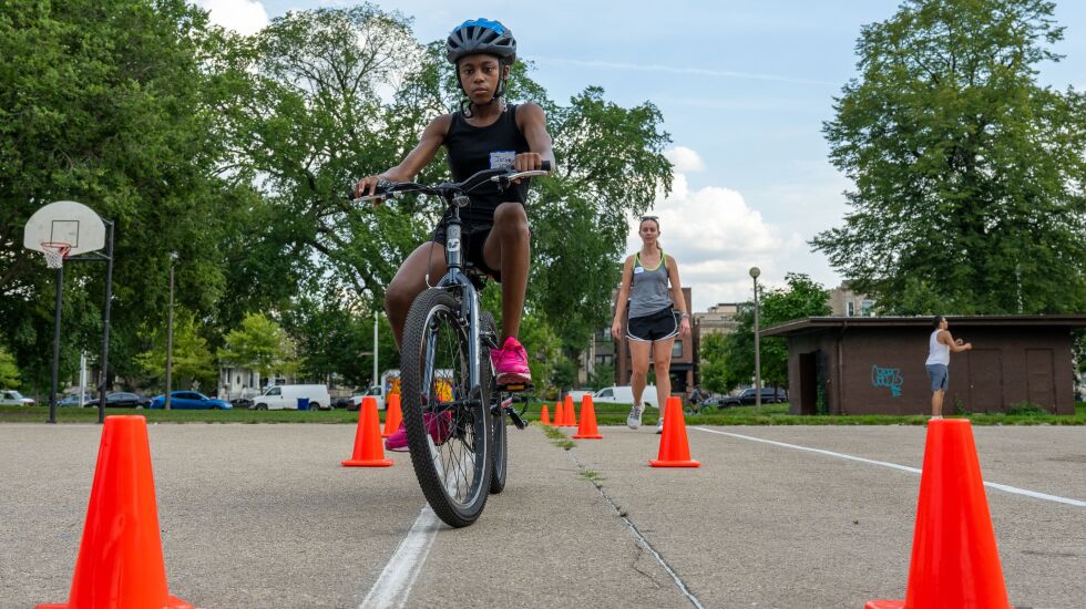 Many of the kids who come through her program haven’t learned how to do the three triathlon sports — some don’t own bikes or can’t access swimming lessons. Live Grit Soars provides the gear, including bikes, and covers the $90 registration cost for the triathlon.