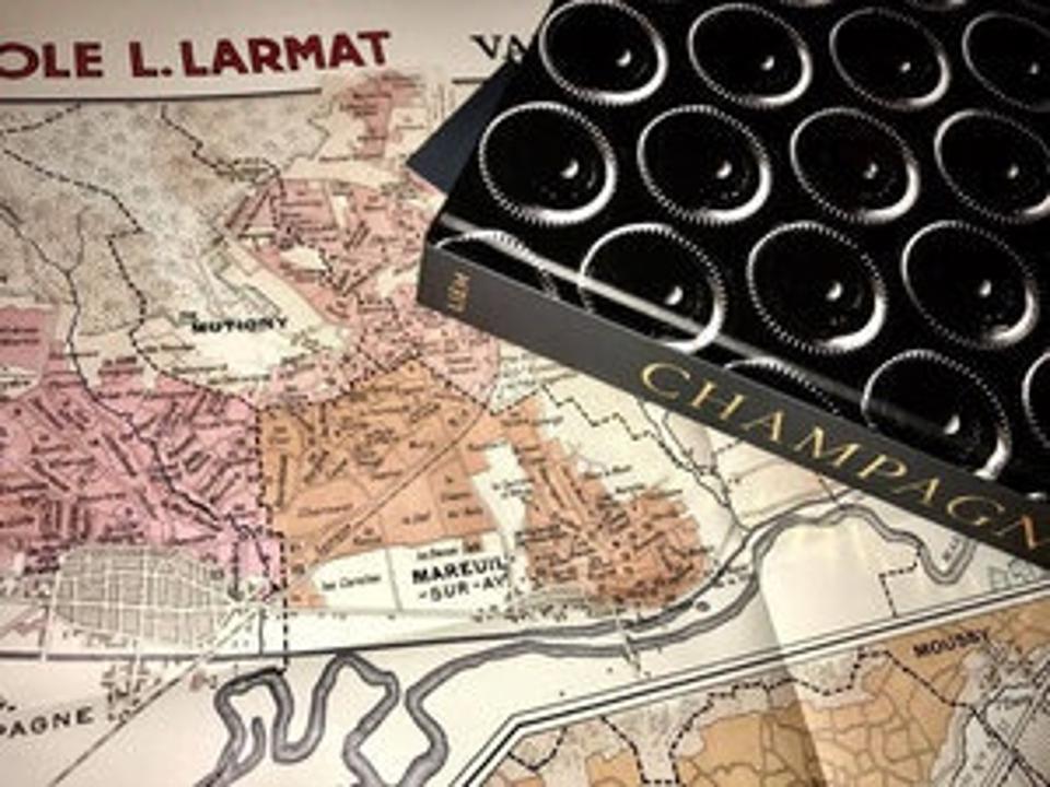 De Long. Created by an architect and his designer wife, the maps and map sets cover 24 regions in a variety of formats–individual maps, sets for bookshelf, wall posters and digital. The highly detailed maps are clearly labeled with text, color coded and include important geographic details. All are sourced so users can be confident of the information. De Long worked with Master of Wine Charles Curtis on a series devoted to Champagne (example below), the first such update since the Larmat maps.